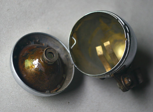 lampu sepedamerk Bosch, kondisi masih tergolong mulus, hanya sedikit penyok pada bagian belakang, kaca, reflektor & jepitan masi orisinil.